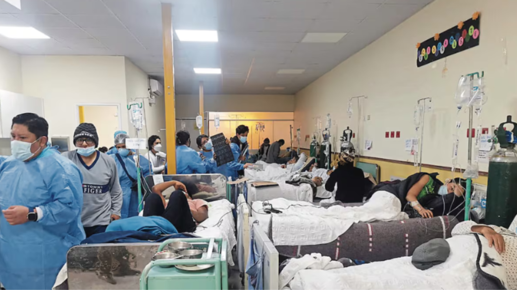 Treinta pacientes del área de Medicina del Hospital III Goyeneche de Arequipa seguirán hacinados en diversas áreas del nosocomio. Los usuarios hospitalizados fueron trasladados a otros ambientes, tras el colapso de un desagüe que provocó que sus habitaciones y pasillos se vieran infestados de aguas servidas.